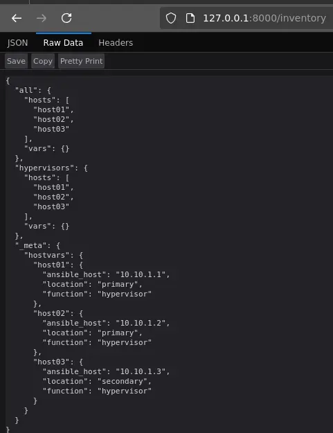 We now have the endpoint to retrieve and present our inventory but we still need to create the code for the Ansible side. So here it is….