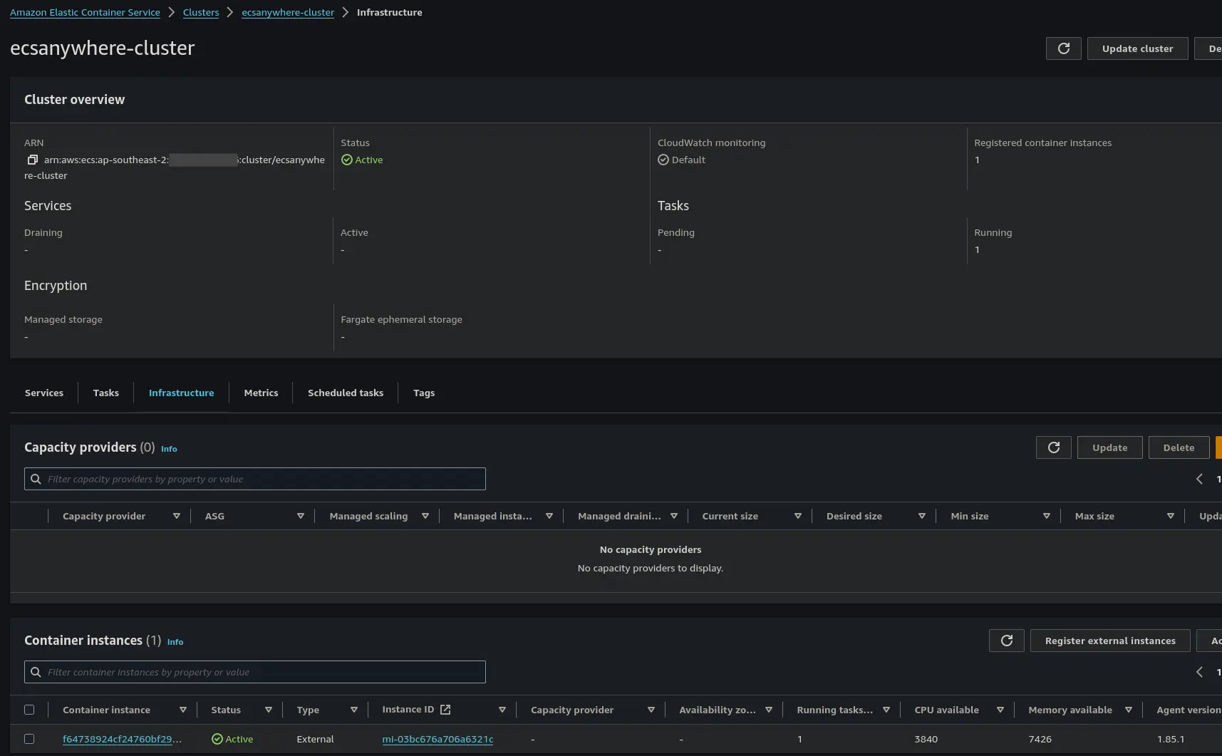 We need to have an ECS cluster in AWS to register our external instance (host) with. We also want logs for when something doesn’t work or it breaks aid with troubleshooting.