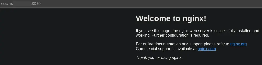 Browsing to the ECSVM on port 8080 we are again presented with the familar default nginx page